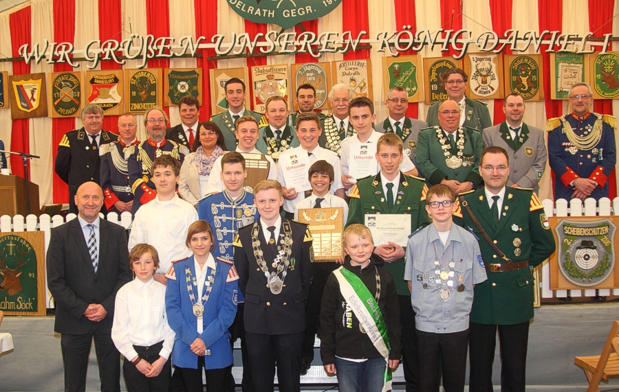 Der St. Hubertus Schützenverein Delrath war erstmalig Gastgeber beim Bezirks - Jungschützentag des Bezirksverbandes Nettesheim. Ein kleiner Festzug, angeführt vom Diözesanjugendwallfahrtskreuz, führte zur gut besuchten Jugendmesse im Festzelt, zelebriert von Bezirkspräses Pfr. Peter Mario Werner. Ein besonderes Ereignis war die Segnung von 11 neuen Schwenkfahnen für die Bezirks-Fahnenschwenkergruppe.